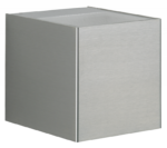 with 2-sided light emission, narrow at the top and bottom, made of stainless steel with lens optics. Cast aluminium mounting plate Fitted for 2 x LED 6.7 W, 600 lm each, 3000 IP 44 – protection class : 140 x 155 x 150 Energy efficiency class light source: A+.