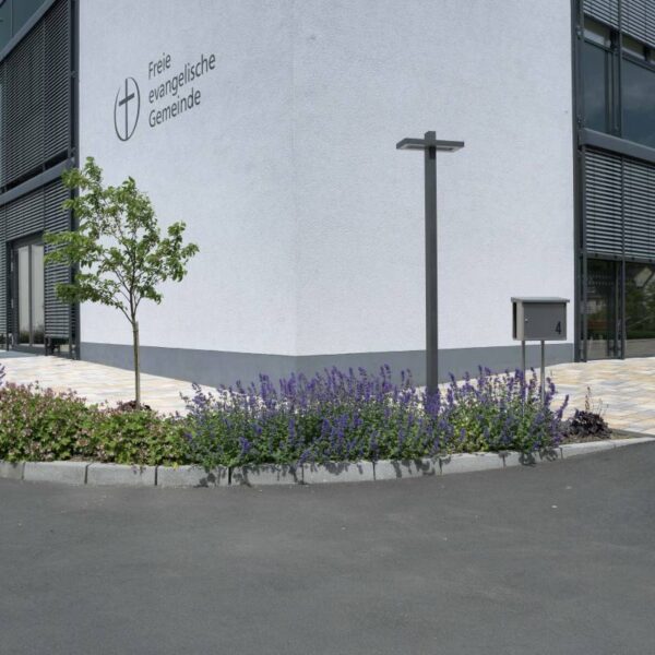 Die Gestaltung der Mastleuchte zeigt ihre Stärken: Die Albert-LED-Mastleuchte besticht durch ihr modernes und elegantes Design. Das Gehäuse ist in den Farben Anthrazit, Schwarz, Weiß und Silber erhältlich und bietet somit die Möglichkeit, die Leuchte optimal an die Umgebung anzupassen. Die strukturierte Glasabdeckung verleiht der Leuchte eine besondere Note und sorgt für eine angenehme Lichtverteilung. Mit einer Breite von 220 mm und einer Länge von 500 mm ist sie zudem platzsparend und unaufdringlich. Die Höhe/Tiefe beträgt 2500 mm.