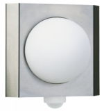 aus Edelstahl mit opalem Glas, mit separater Montageplatte aus Aluminiumguß. Eingerichtet für 1 x Lampe A60 75 W, Fassung E27.Schutzart IP 44 – Schutzklasse : 280 x 280 x 100 mm