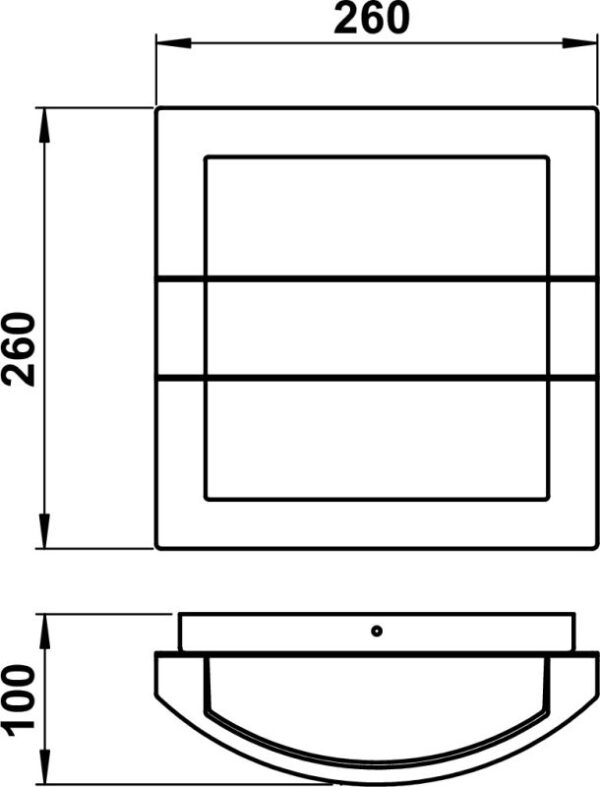 aus Edelstahl mit opalem Glas, mit separater Montageplatte aus Aluminiumguß. Eingerichtet für 1 x Lampe A60 75W,Fassung E27.Schutzart IP 44 – Schutzklasse : 260 x 260 x 100 mm
