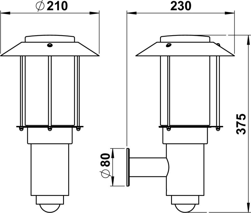 Albert-Wandleuchte 690238 – mit integriertem Bewegungsmelder – aus Edelstahl mit opalem Glas. Eingerichtet für 1 x Lampe A60 75W, Fassung E27.Schutzart IP 44 – Schutzklasse : d 210 x 365 x 230 mm